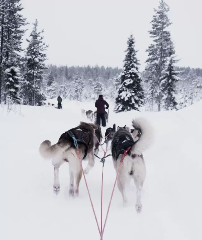 狗拉雪橇是你去芬兰一定不能错过的项目。芬兰常见的雪橇犬主要是西伯利亚雪橇犬(哈士奇)和阿拉斯加雪橇犬,它们性情温顺,一点都不怕生,即使是陌生人,也会跟你亲昵~